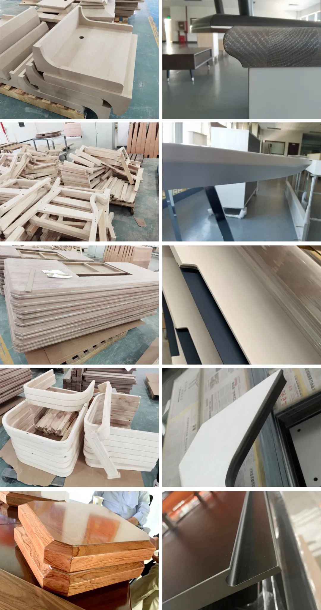 Richfruits también continuará rastreando el proceso de pintura de piezas de trabajo más complejas, como encimeras de oficina, paneles laterales de escritorios de oficina, marcos de mesitas de noche para muebles de suite, paneles de gabinetes curvos, encimeras de exhibición, etc., analizará las soluciones a los problemas encontrados y le brindará más soluciones adecuadas El programa de la línea de producción de recubrimientos.